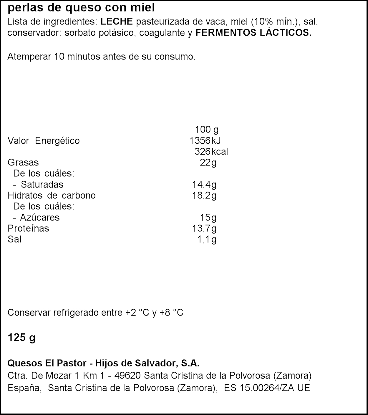 EL PASTOR PERLES DE FORMATGE AMB MEL 125 GR