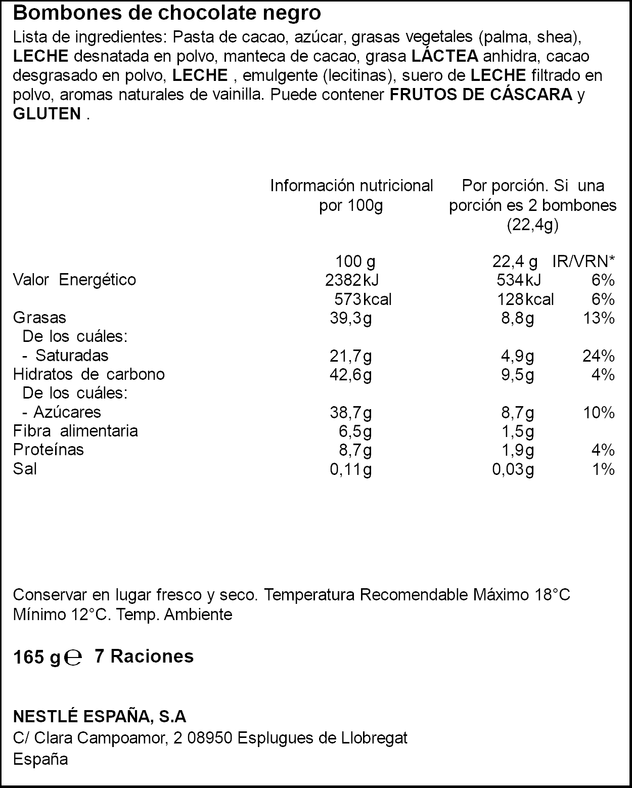 NESTLE BOMBONS DARK SUBLIME 70% 142GR