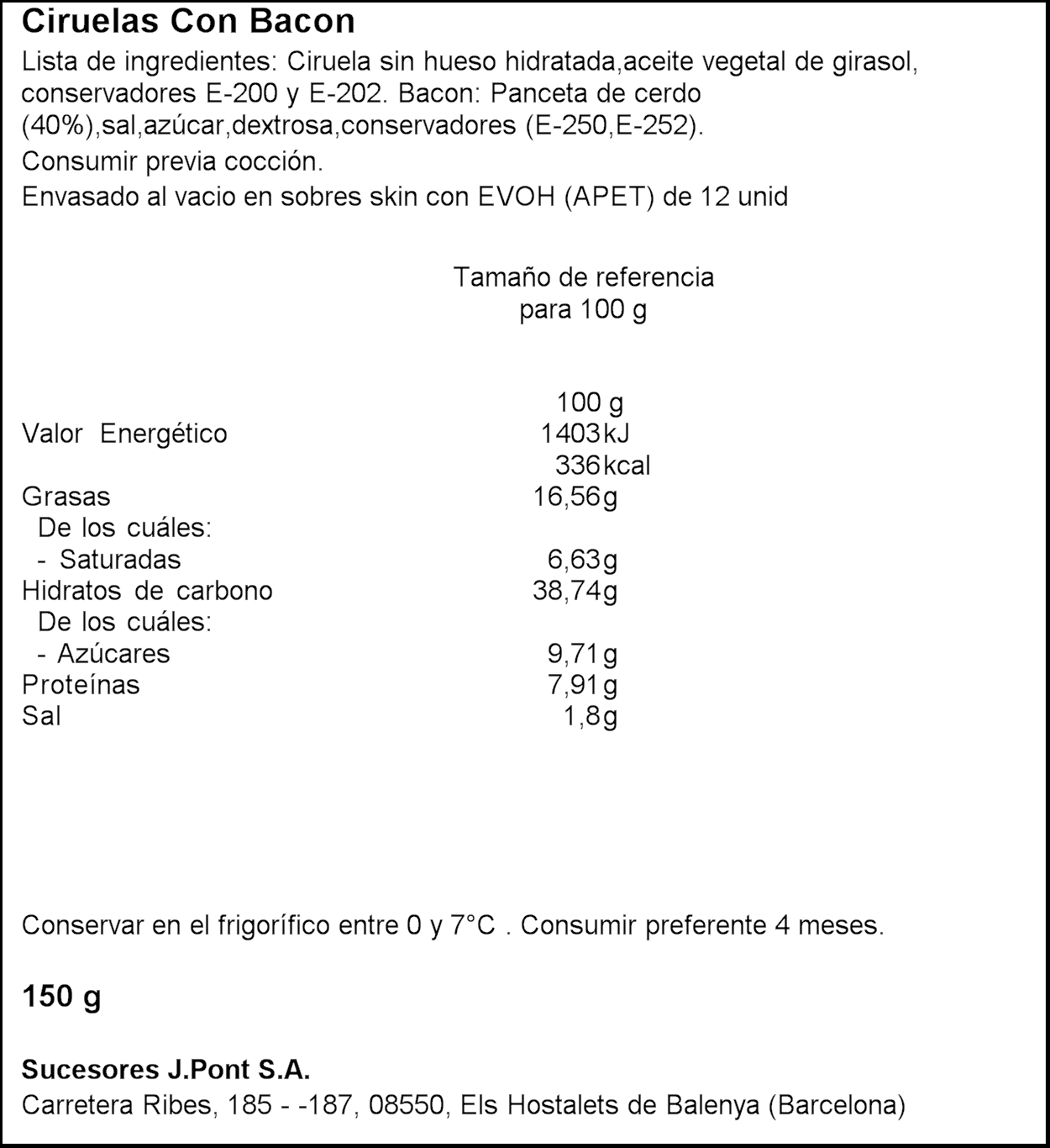 PONT PRUNES AMB BACON 150GR